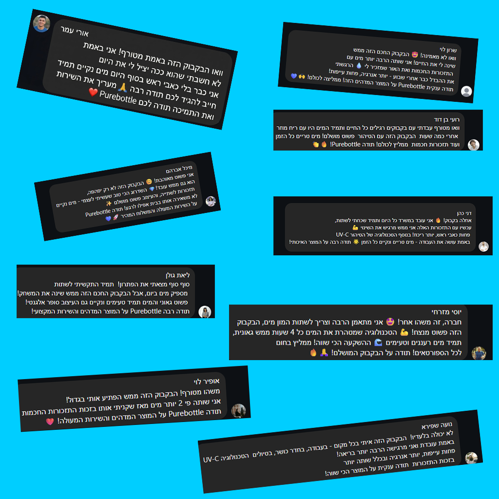 סיפרו שהבקבוק שיפר את חוויית היום־יום שלהם – במיוחד בתחושת האנרגיה והרעננות.